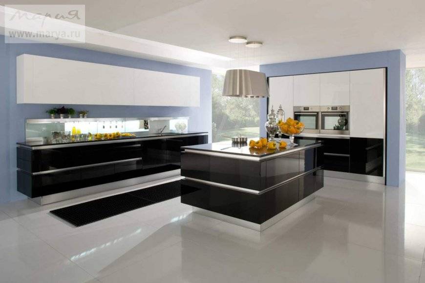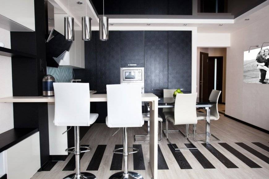 Светлая кухня с черными стульями и столомКонтрастная кухня в современном стиле