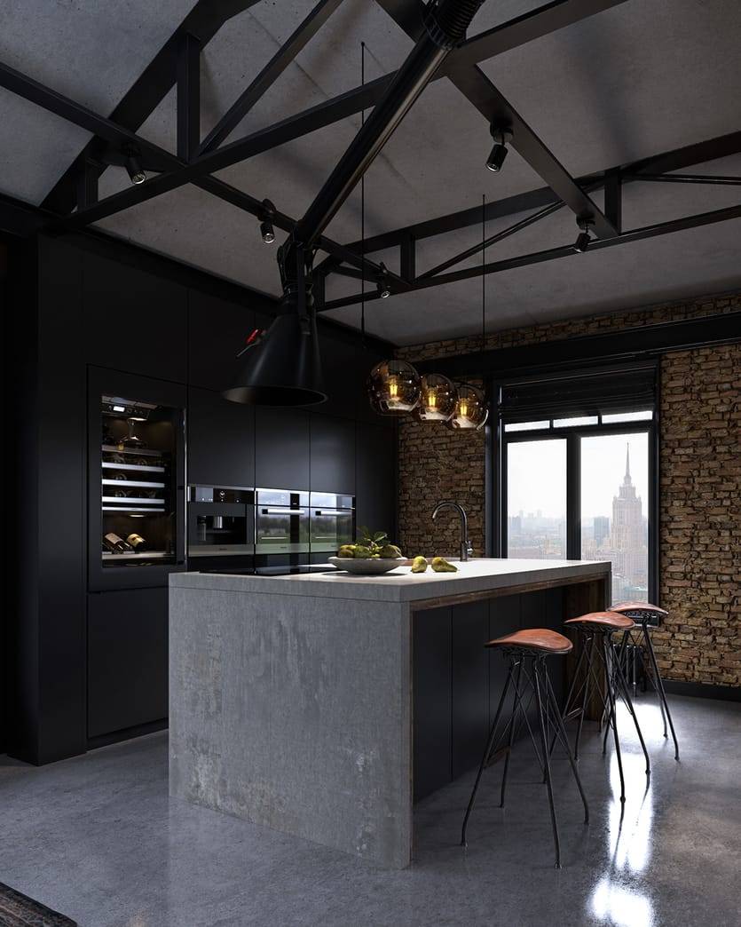 К основным характеристикам кухни в стиле лофт можно отнести следующее: