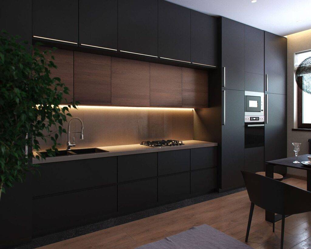 Черная кухня в стиле минимализм