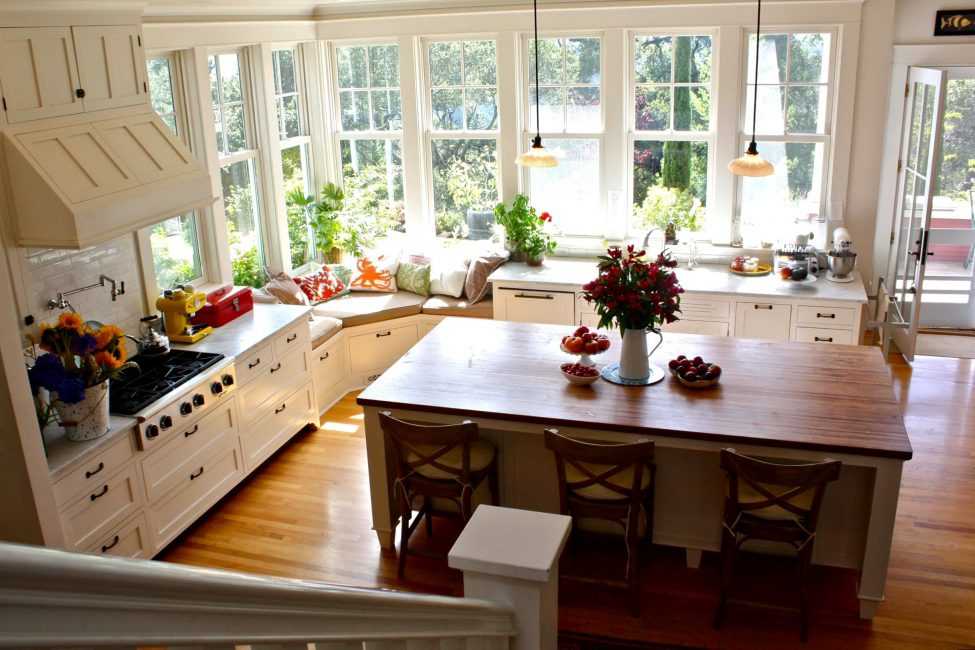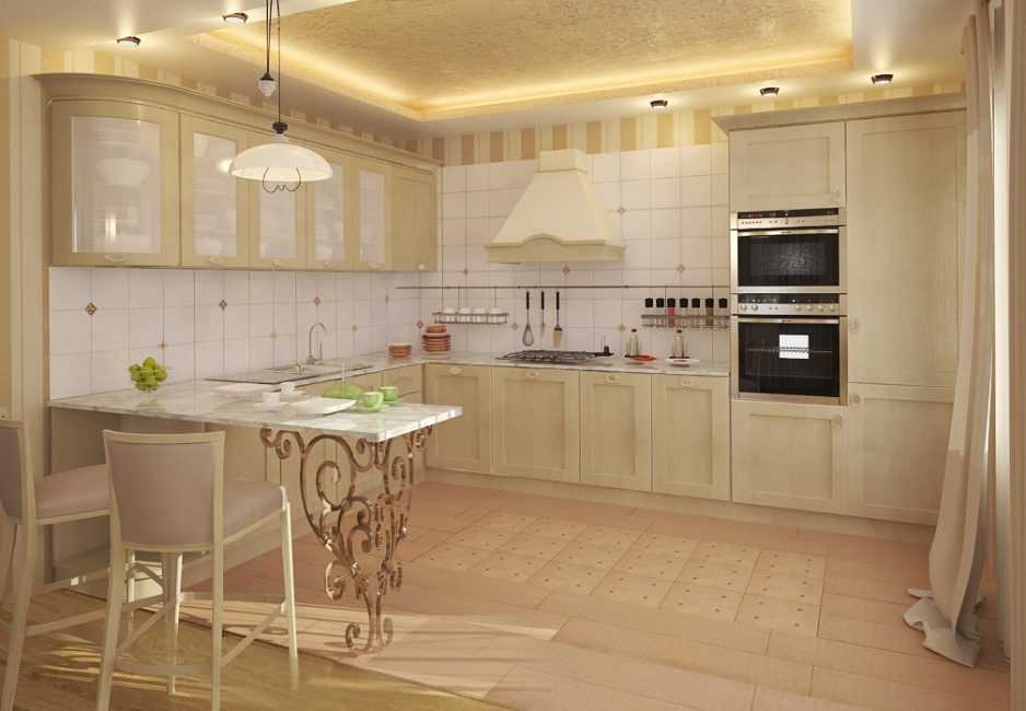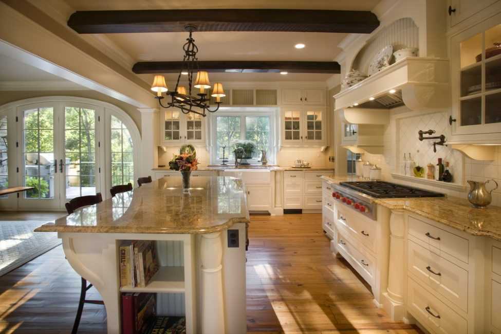 Не оказываясь перед проблемой ограниченной площади, можно позволить себе обставить кухню с широтой, и использованием декоративных элементов.