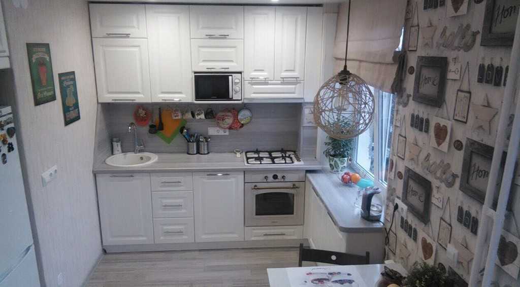 Площадь большинства кухонь находится в пределах 5-6 квадратов, и одной стены оказывается достаточно, чтобы разместить рядом раковину, плиту и небольшой холодильник. Нередко полезная длина стен может оказаться меньше из-за особенностей планировки или наличия инженерных конструкций (вентиляционных каналов в помещениях с газовой колонкой).