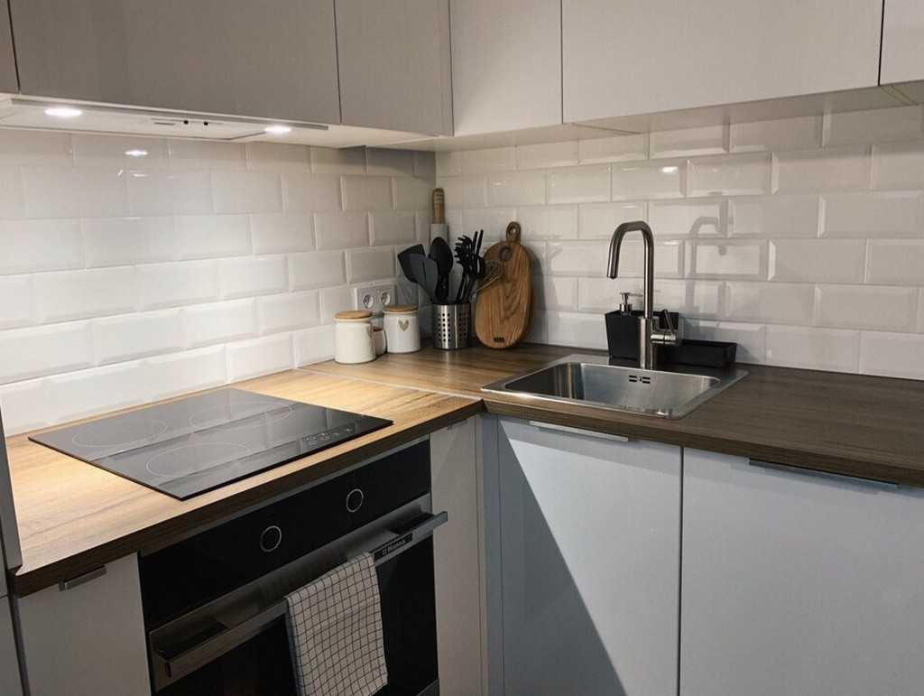 - стерильность и порядок — даже если вы не успеваете убирать где надо или разбросали предметы по всему помещению, все равно такая кухня смотрится на порядок аккуратнее всех прочих вариантов.