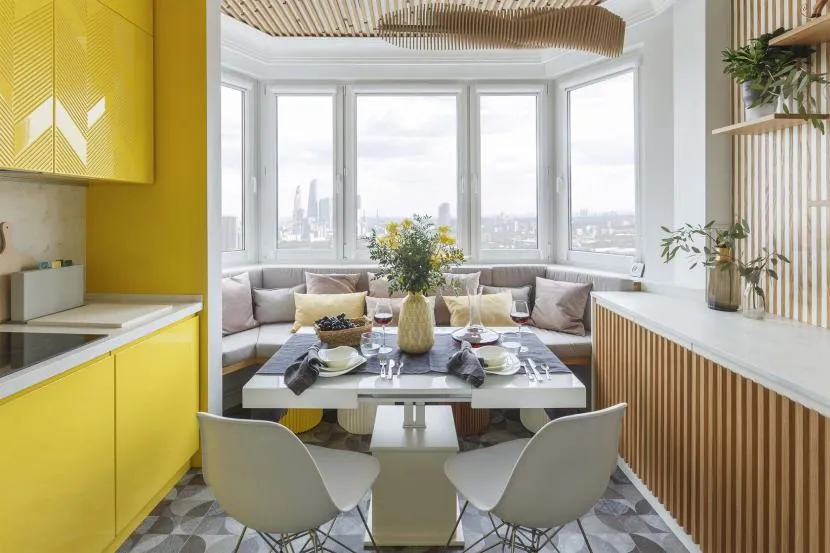 В компактной кухне лучшим вариантом будет раскладная модель или стол-трансформер. Если площадь совсем маленькая, то обеденный стол можно заменить подоконником, играющим роль столешницы.