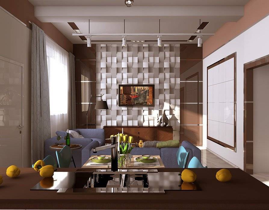 Оформление маленькой квартиры в стиле ОнтоАрт позволяет создать уютную обстановку с функциональными деталями. При обустройстве используют лаконичную мебель светлых оттенков, а стены могут быть однотонными или с лёгким узором. Декор представлен в виде абстрактных картин, но также можно оригинально оформить зону с телевизором. В интерьер актуальны спокойные и натуральные оттенки, что сделает квартиру уютной.