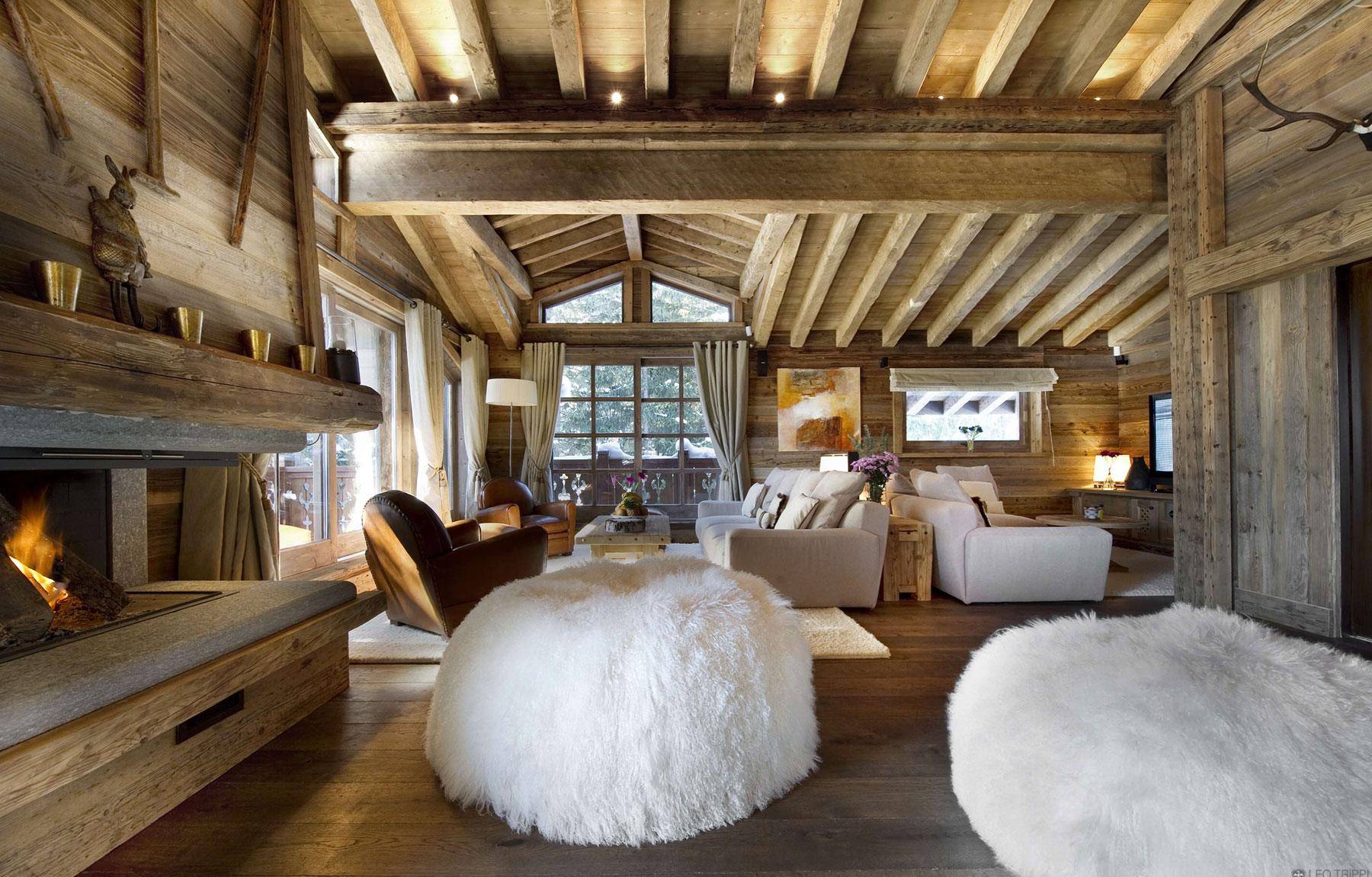 Как вы видите, большинство шале имеет множество натуральных материалов, таких как дерево и камень, а также кожу в составе мебели, а затем мех и шерсть в аксессуарах.