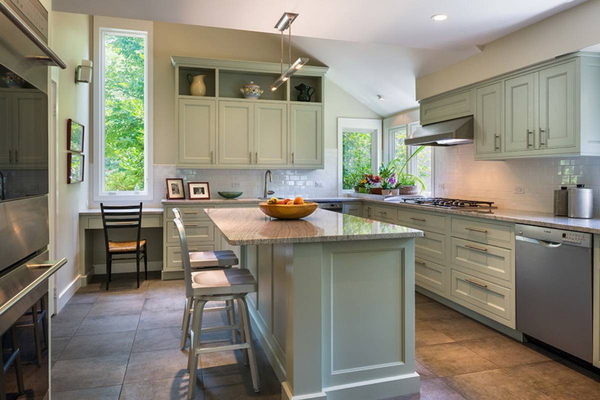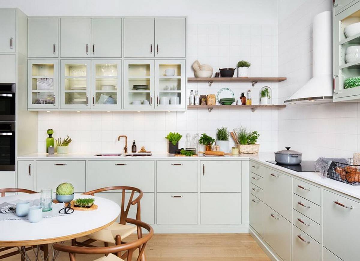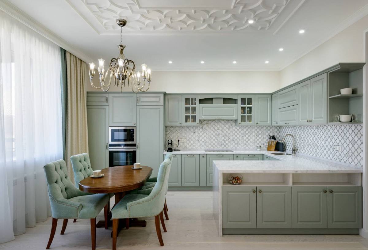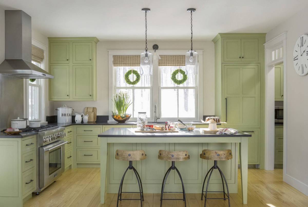 Серо-зеленые и салатовые стены – это базовый цвет, который впишется в любой интерьер, особенно хорош для небольших кухонь и кухонь, выдержанных в классическом стиле.