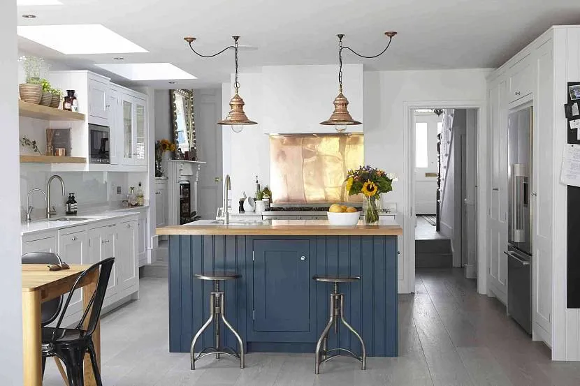 Кухни ценятся не только за безупречный внешний вид, но и за практичность. Их характерной приметой является открытая планировка пространства и непременный остров в центре кухонной зоны. В оснащении кухни ценится удобство, что выражается в многообразии мест хранения.