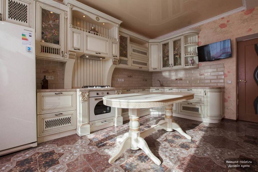 В оформлении комнаты может использоваться лепнина, плитка под мрамор, песчаник, столешницы из натурального, искусственного камня и др. Прованс пользуется высокой популярностью, является одним из модных стилей, в сети много фото кухонь под старину, выполненных в этом дизайнерском направлении. Можно найти в них проект, соответствующий площади, планировке вашей комнаты.