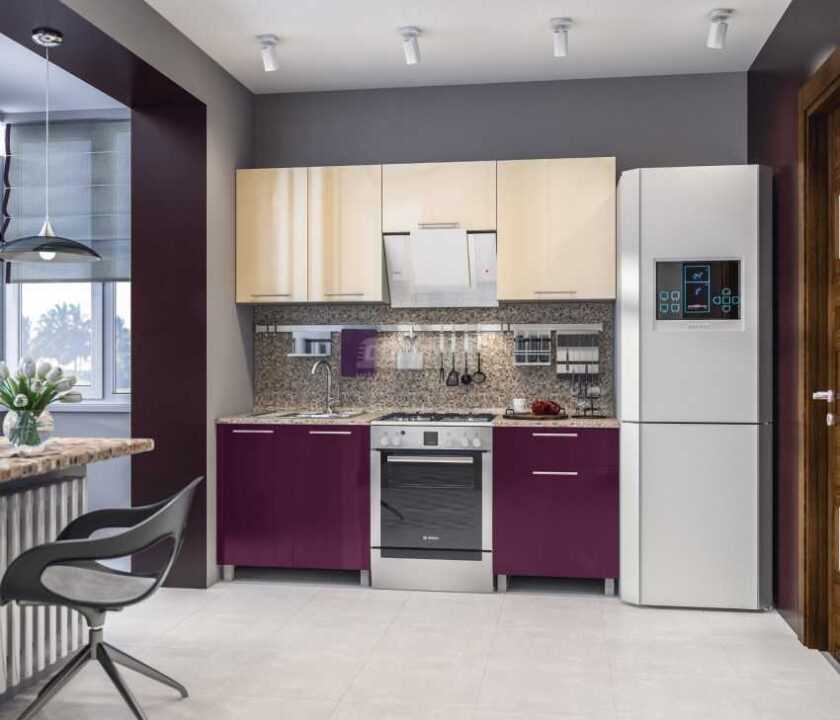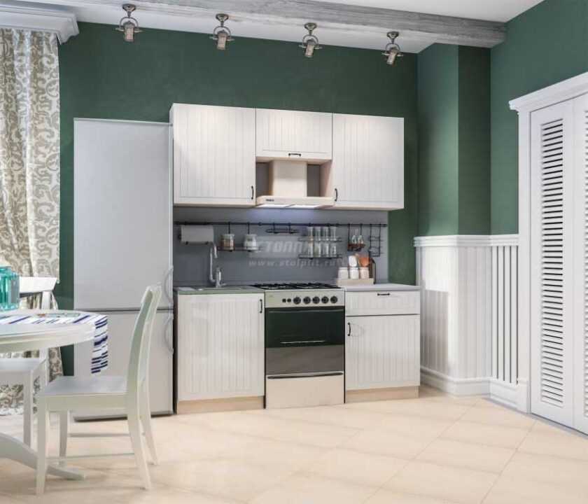 Самая маленькая кухня — Деми в современном стиле имеет длину от 400 до 1000 мм. Фасады представлены двумя вариантами расцветок: зеленый лимон и красный. Корпус изготовлен из ЛДСП белого цвета.