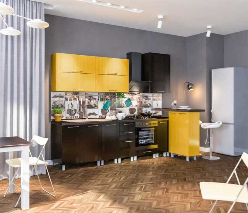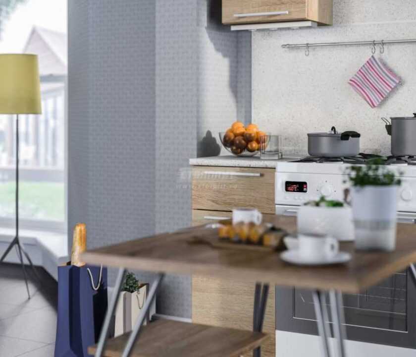 Мебельная фабрика выпускает в основном готовые кухонные комплекты определённых размеров для небольших квартир. Их ассортимент довольно широк, поэтому можно выбрать гарнитур для кухни любой планировки. Для напольных и навесных шкафчиков можно выбрать панель, которая подойдёт под стиль помещения.