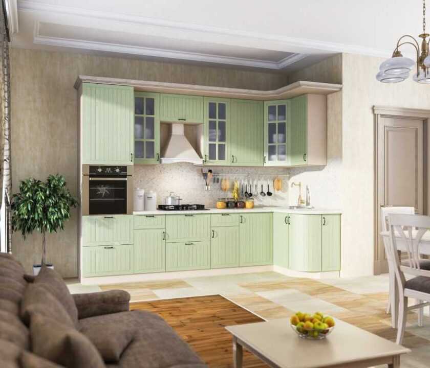 Кухня «Оля» относится к премиум сегменту. Фасады здесь имеют богатую отделку, шкафчики – весьма подробное наполнение. Глубина мебели составляет от 40 до 80 см, что позволяет подобрать гарнитур под любое помещение.