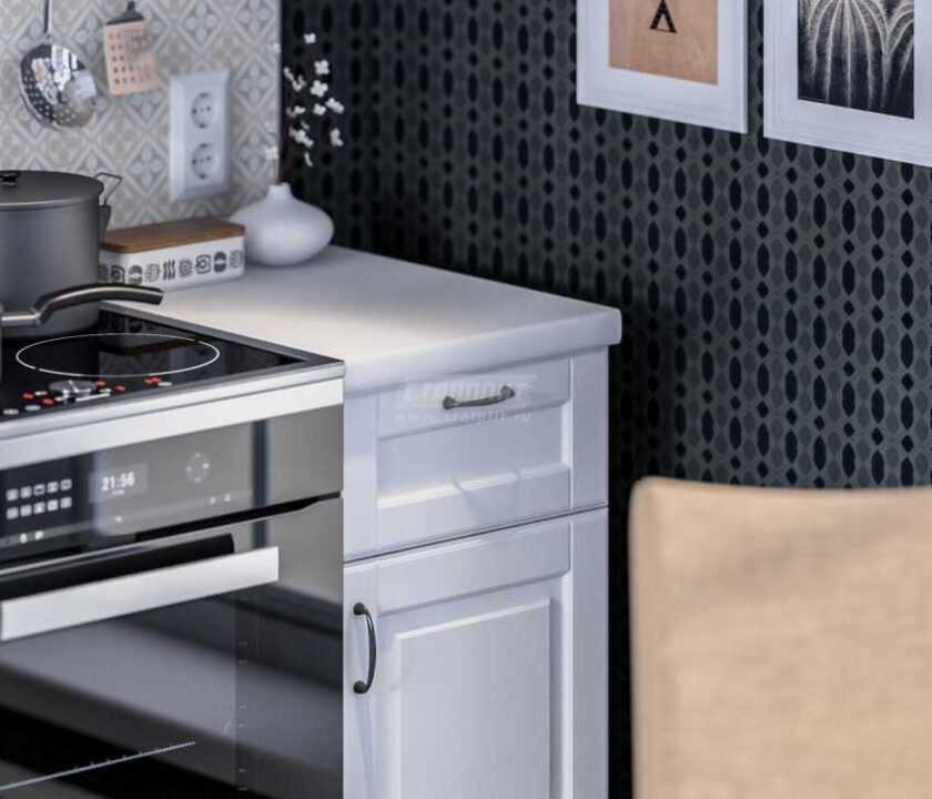 Кухня «Анна» относится к эконом сегменту и является весьма недорогой. Глубина шкафов здесь составляет от 40 до 60 см, что вполне подходит для малогабаритных кухонь.