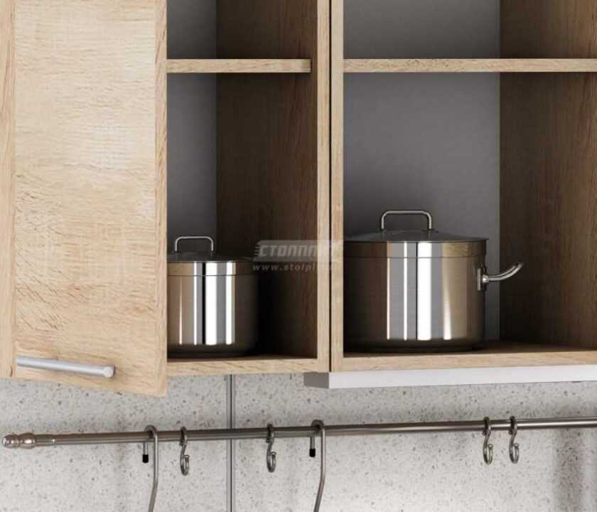 Шкафы-панели и настенные шкафы могут иметь ширину 60 или 80 см. Благодаря этому можно выбрать модули под размер кухни и составить индивидуальный гарнитур.
