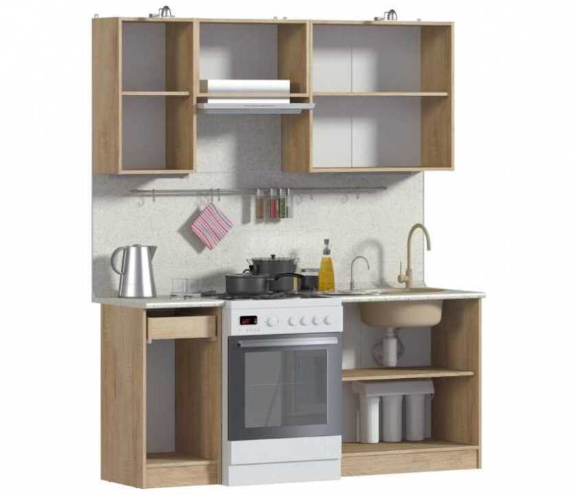 Любой из представленных гарнитуров в стандартной комплектации имеет только шкафы. Столешницу, мойку и дополнительные аксессуары вы можете выбрать самостоятельно. Каталог предлагает большой выбор сопутствующих элементов к готовым гарнитурам. Цены зависят от размера изделия.
