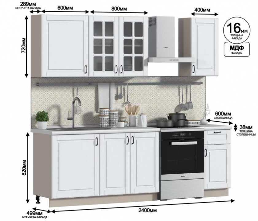 - Большой ассортимент продукции с разными размерами, что позволяет обустроить как малогабаритную, так и просторную кухню.