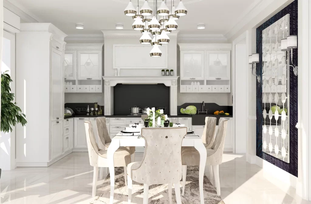 Классические светильники в интерьере кухни