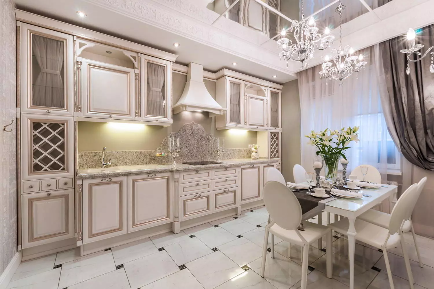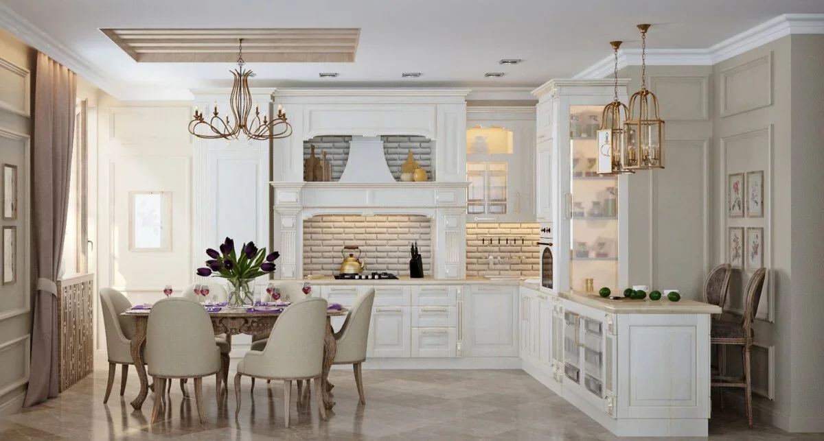 Дизайн классической кухни в светлых тонах