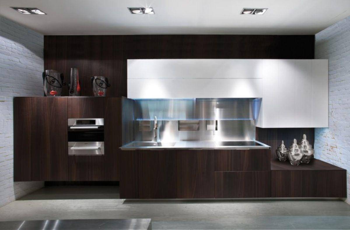 Сдержанный и строгий дизайн в стиле хай-тек можно разбавить коричневым цветом