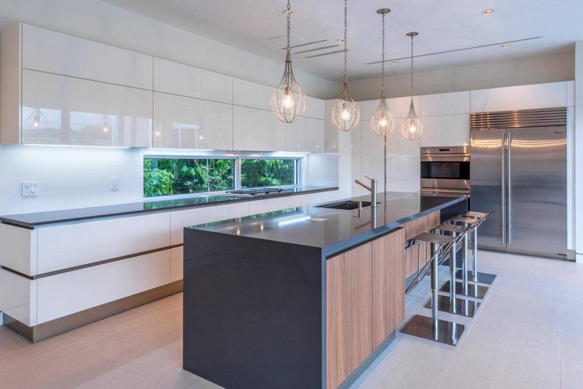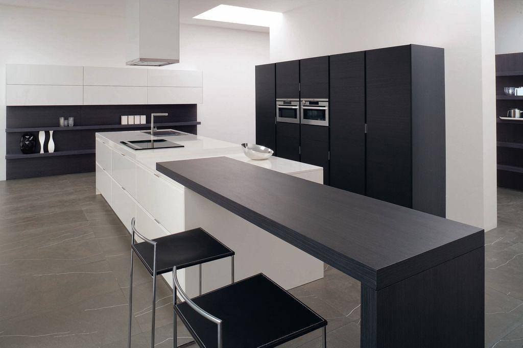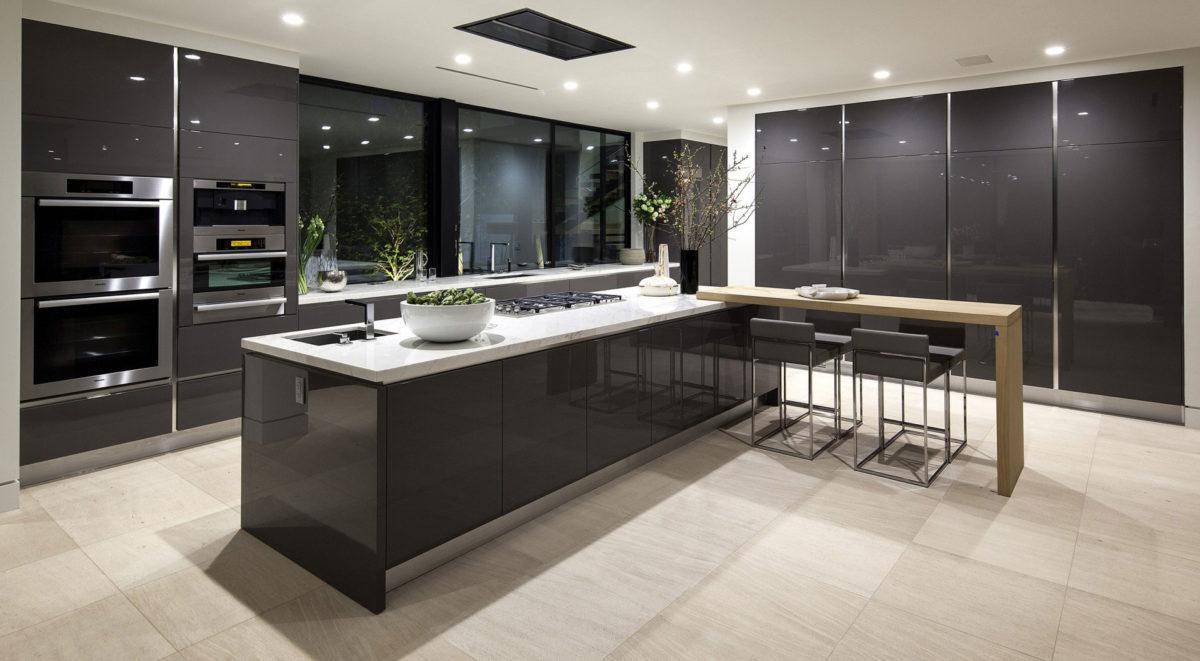 Чем современнее и функциональней гарнитур, тем лучше. Рекомендуют использовать нажимные механизмы, разноплановые ящики, стильную столешницу, раковину под камень или металлическую.