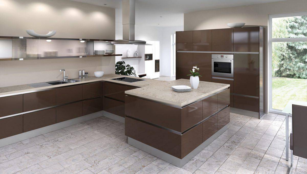 Теплая цветовая гамма в дизайне кухонь хай-тек: фото помещений в коричневом цвете