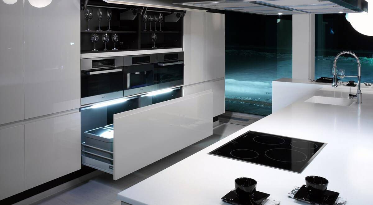 Белые кухни в стиле хай-тек: светлые и стерильные интерьеры