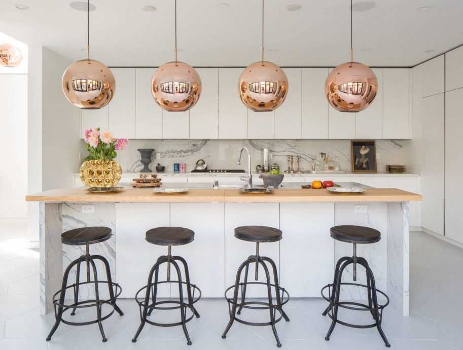 Барная стойка – очень удачный дизайнерский ход, который позволяет отлично организовать пространство и создать уютную атмосферу. Как правило, она полностью соответствует тону основного гарнитура. При этом есть 2 основных варианта размещения конструкции: