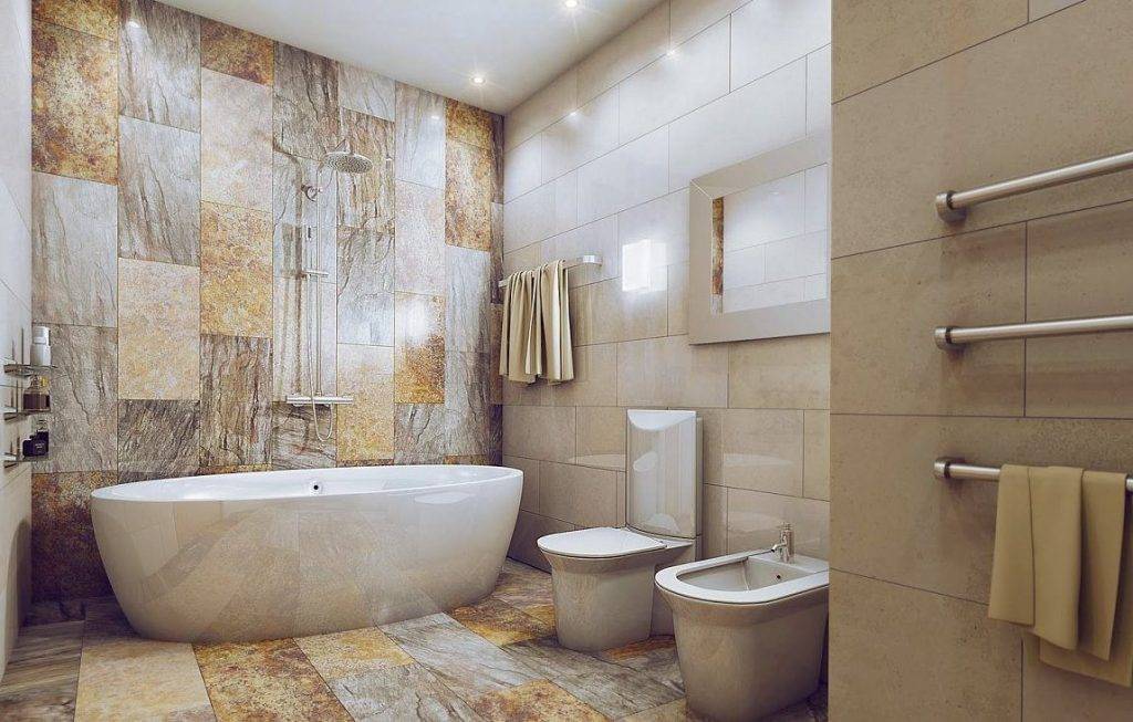 Ванная, раковин, унитаз, биде должны быть подвесными, а коммуникации скрыты коробами под облицовочным покрытием. Это веяние дает возможность применить современные сантехнические детали, формы которых округлые и изящные.