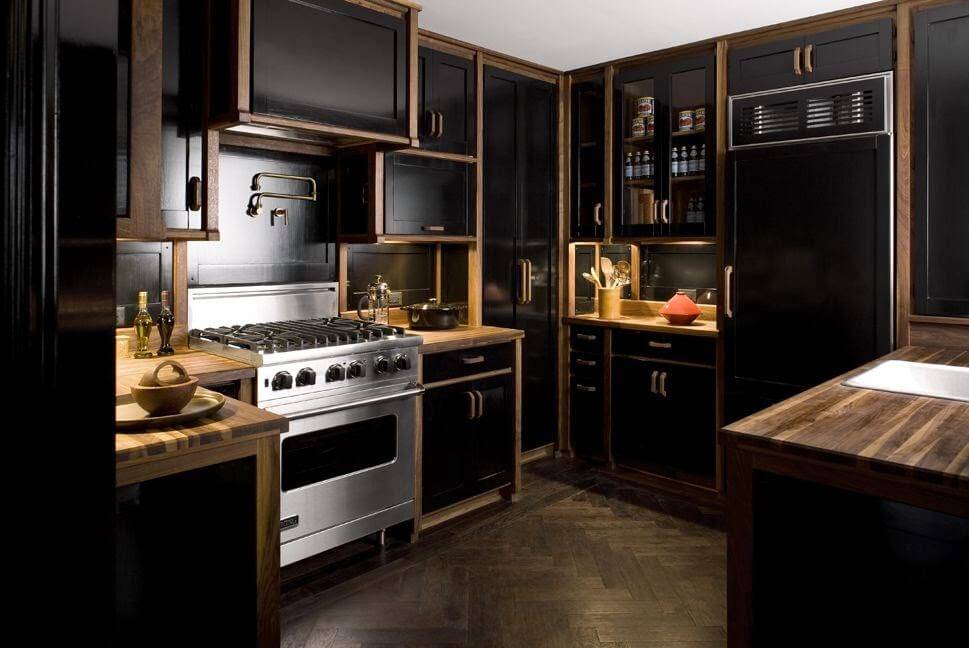 Добавление черного цвета сделает кухню мрачнее. Если хочется добавить черный, то нужно грамотно разбавить светлыми тонами, чтоб получить особенный стиль.