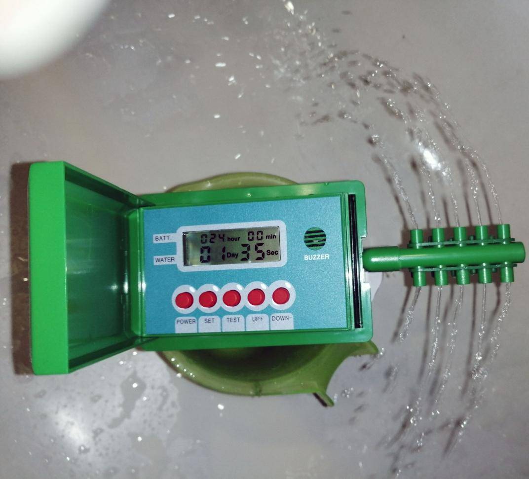 Очень полезное приспособление для тех, кто много времени проводит в разъездах. Кроме того, система автоматического полива также полезна и для тех, кто на даче бывает редко, но хочет видеть свой участок зеленеющим и цветущим. Система представляет собой автоматический разбрызгиватель воды для микрокапельного орошения почвы, оснащенный блоком управления «умного контроллера».