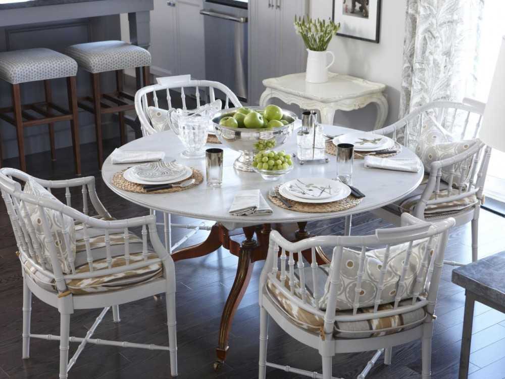 Несмотря на несложную функциональную роль, стулья не должны диссонировать с окружением. Благородный белый цвет всегда выигрышный, так как ему удается создавать уравновешенный ансамбль с самыми разными по тону и насыщенности колерами.