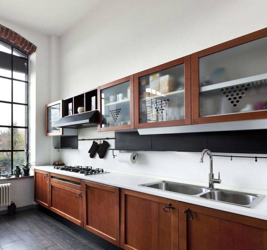 Другой важный принцип – практичность, выражается в возможности быстро и легко заменить нужные элементы – каркас, планку, карниз и т.д. Это удобно и практично в случае порчи отдельных частей или в случае, если хочется недорого и без лишних хлопот обновить надоевший с годами интерьер кухни.