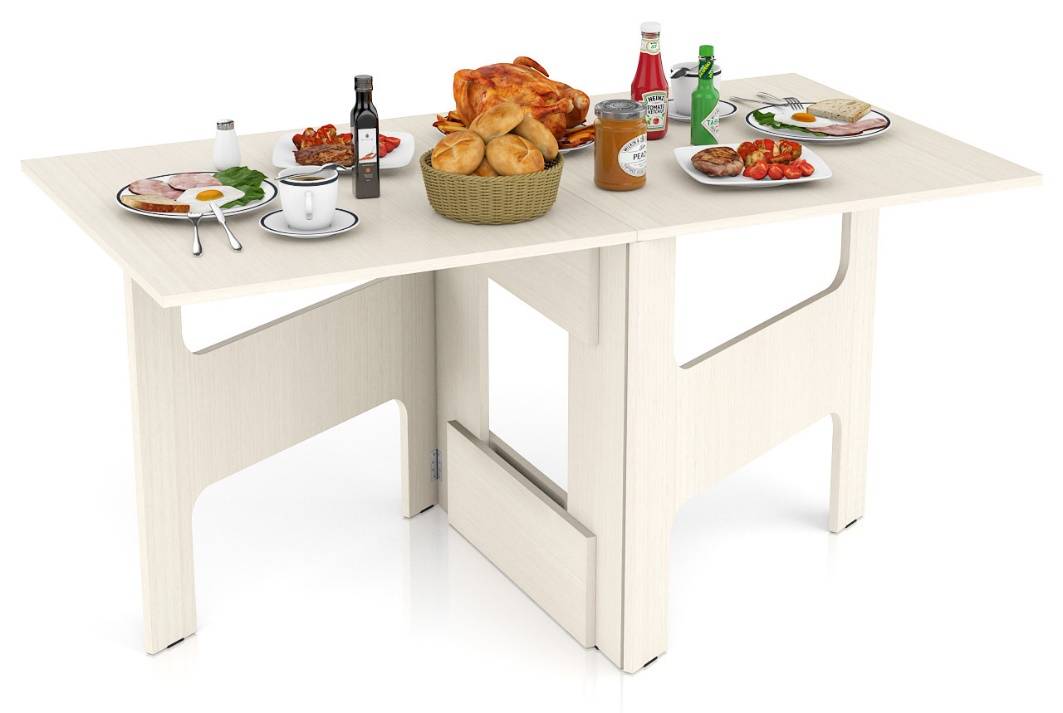 Он может иметь различный механизм раскладки. Современные конструкции, как правило, удобны в обращении: быстро превращаются из миниатюрного столика в просторный обеденный стол на 4-6 персон. Справится с ним даже ребенок.