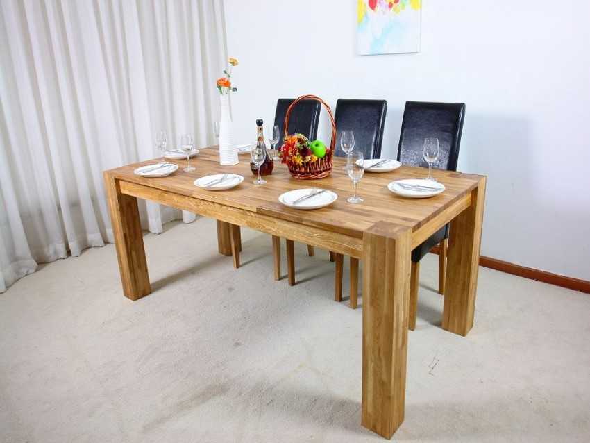 Для сборки рабочего или обеденного стола чаще используют лиственные породы. Детали делают из досок толщиной 50 мм. Ножки выполняют прямыми или скрещенными в виде буквы Х. Все поверхности тщательно зашкуривают, чтобы придать им гладкость. Затем их пропитывают антисептическими средствами для защиты от гниения.
