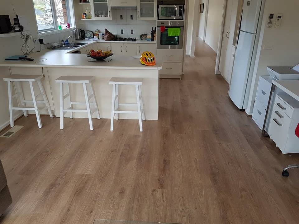 - Большинство видов ламината чувствительны к воздействию воду и смене температуры, так что для укладки пола в кухни необходимо выбирать специализированные типы материалы, а перед их установкой уложить слой подложки и гидроизоляции.