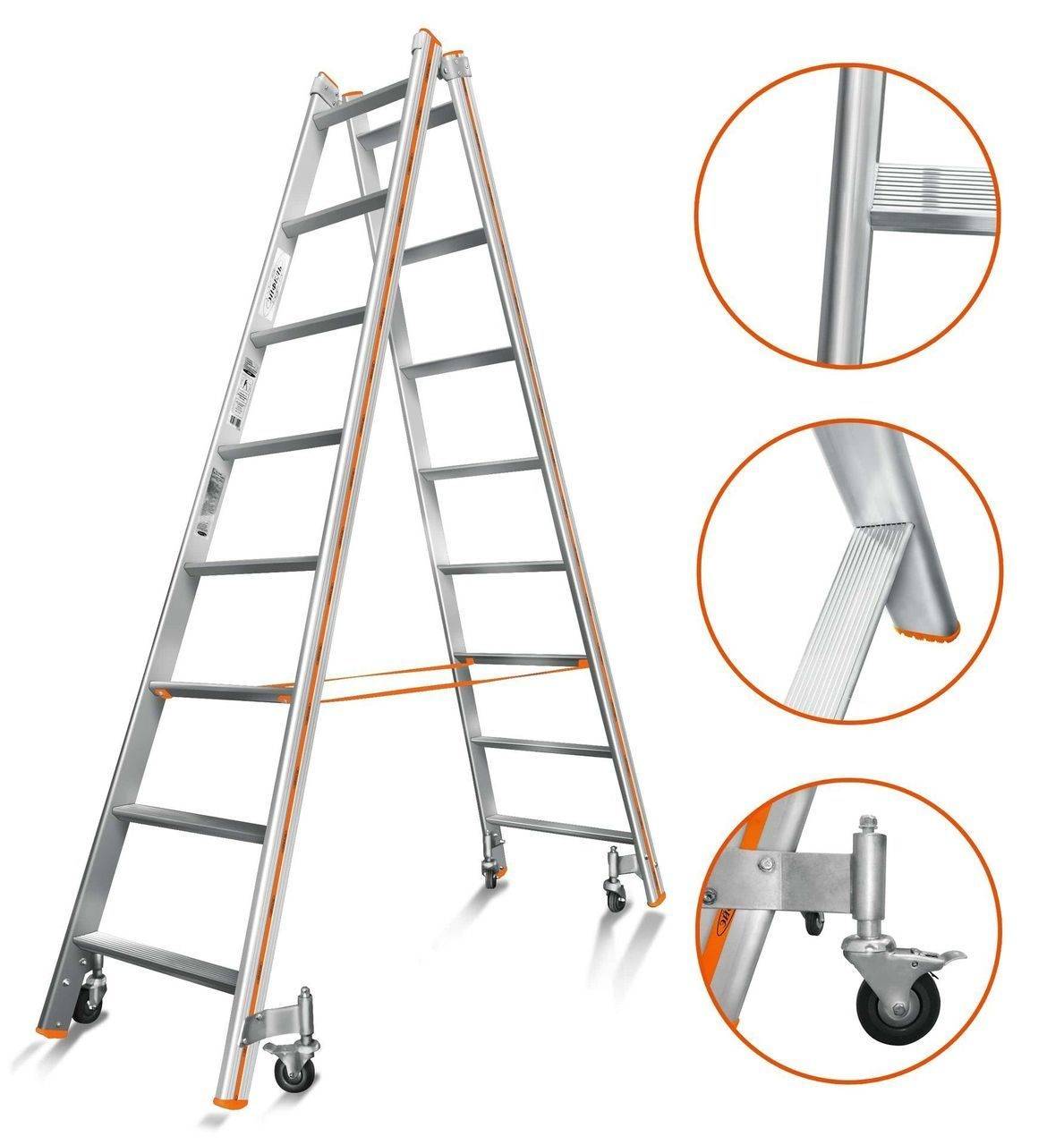 Когда лестница свернута, она занимает минимальное пространство, что позволяет хранить ее даже в небольшой кладовке или шкафу. Получается, что одна лестница может заменить несколько разных ступенчатых стремянок, что очень удобно как для домашних, так и для профессиональных нужд.