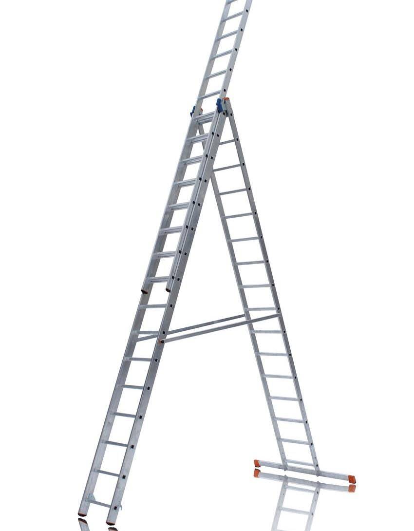 Трехсекционные раскладные лестницы бывают: 3х5; 3х6; 3х7; 3х8; 3х9; 3х10; 3х11; 3х12; 3х13; 3х14. Где 3 – это количество секций лестницы, 5, 6, 7, 8, 9, 10 и.т.д. – количество ступеней в лестнице. Последняя модель лестницы 3х15 только-только начинает появляться в продаже. Область применения трехсекционных раскладных лестниц самая разнообразная. Такая лестница станет надежным партнером как в бытовых условиях, так и на профессинальном поприще.