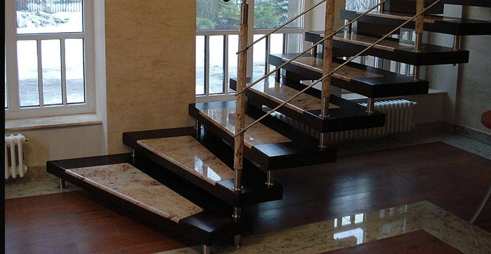 Существуют различные типы мраморных лестничных конструкций: