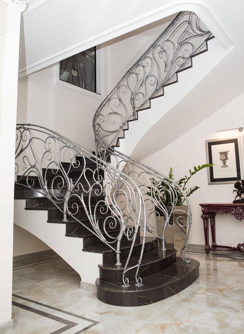 Что касается ограждений, то чаще всего это металл. Неплохо выглядят ограждения, и столбы из нержавеющей стали, латуни, стекла. В более изысканных интерьерах — знакомая ковка или литье из цветных металлов.