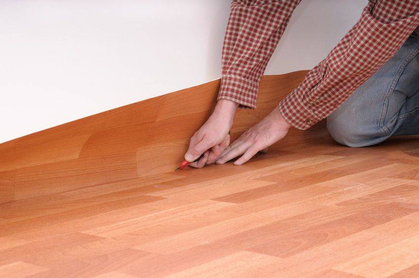 - Оставьте зазор между полом и плинтусами, чтобы обеспечить естественное расширение и сжатие линолеума.