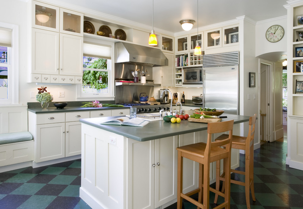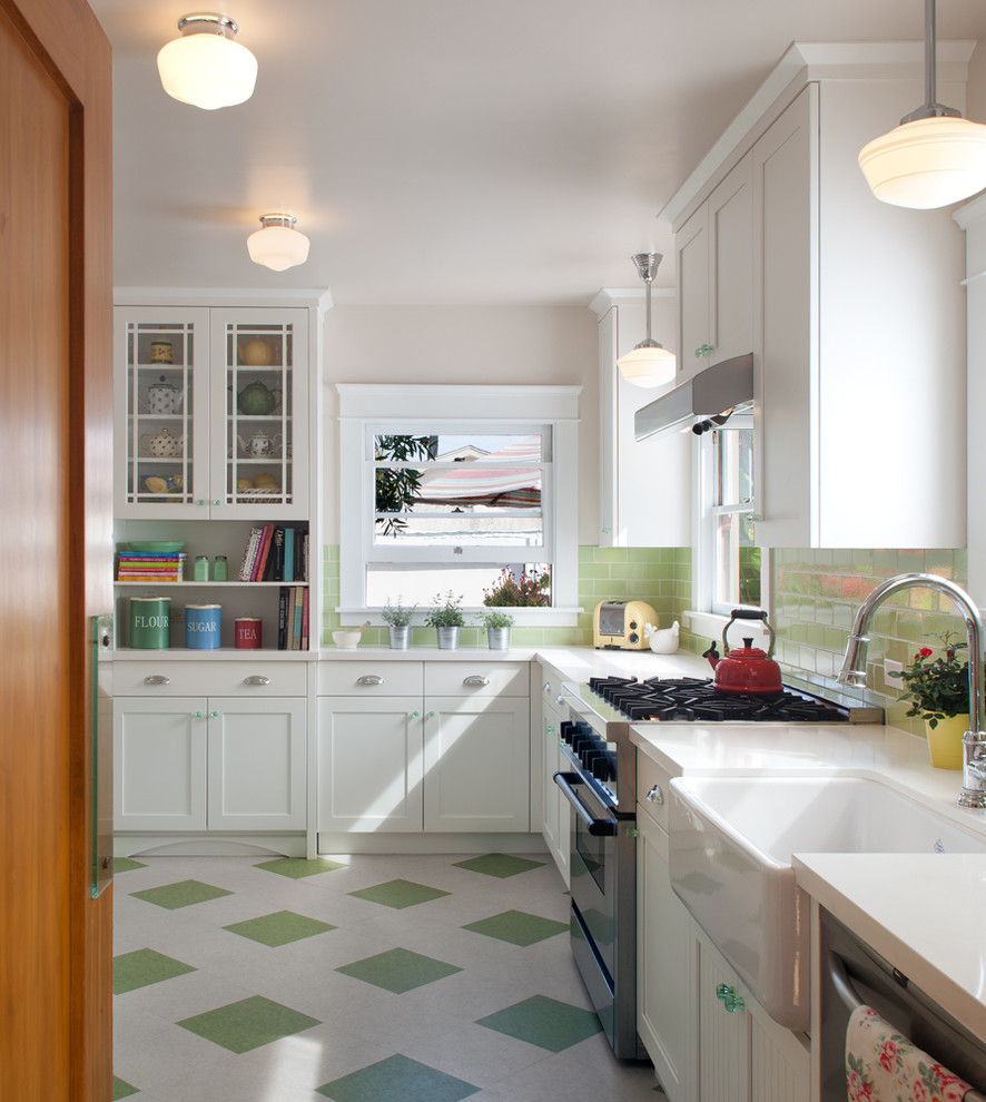 Наша фотогалерея подскажет вам различные варианты, как можно использовать линолеум для кухни под плитку.