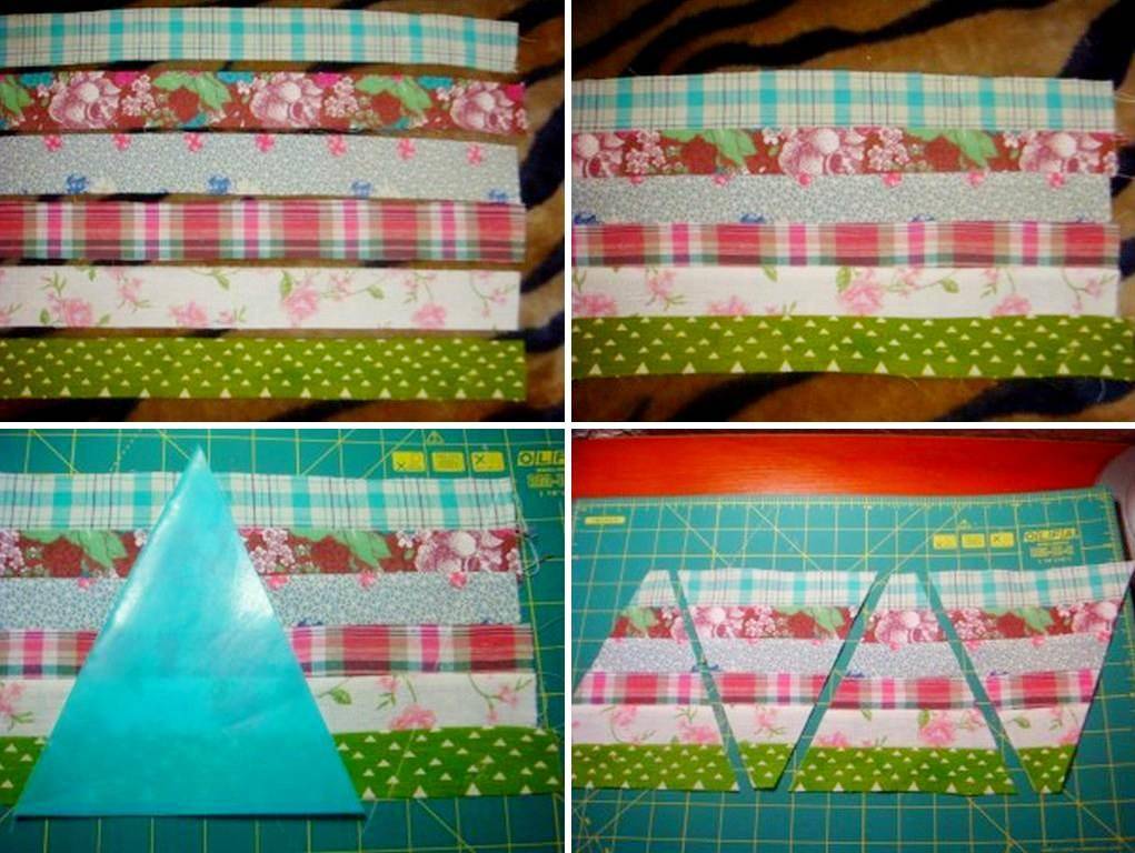 В данной технике применяются лоскутки треугольной формы. Для начинающих мастериц лучше использовать простые фигуры. К примеру, разрезать квадрат пополам, получив равностороннюю заготовку. Их будет гораздо легче уложить, создав красивый рисунок.