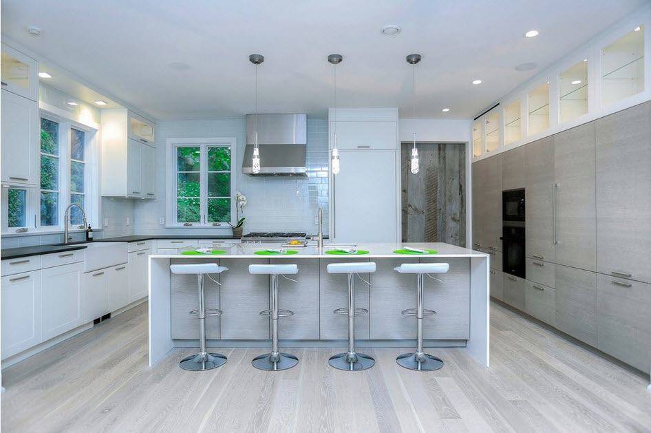 При весьма ограниченном выборе вариантов дизайна (белый — в глянце и матовый, серый, под дерево) Кноксхульт универсален. Как минимум, в интерьере будет смотреться неплохо. Главное — правильно выбрать ручки и фартук.