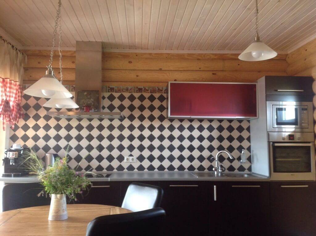 Да, бывают даже такие виды потолка для кухни! Но будьте готовы к тому, что деревянный рисунок этих панелей может сделать комнату похожей на баню. Поверхность покажется довольно грубой. Такое оформление нельзя назвать практичным.