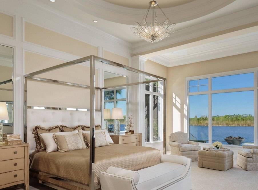 Выбирать люстру нужно исходя из размеров и планировки спальной комнаты