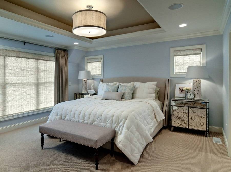 Несколько вариантов, как можно повесить потолочный светильник в спальне.
