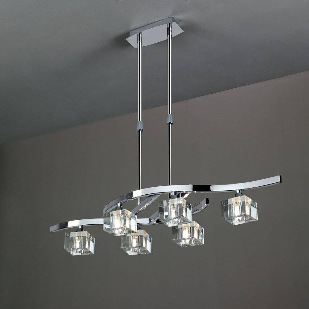 Подвесные люстры могут быть как с одним плафоном, так и представлять целый каркас, к которому прикреплены несколько светильников. Все более популярными становятся изделия с гроздьями из 6 плафонов.
