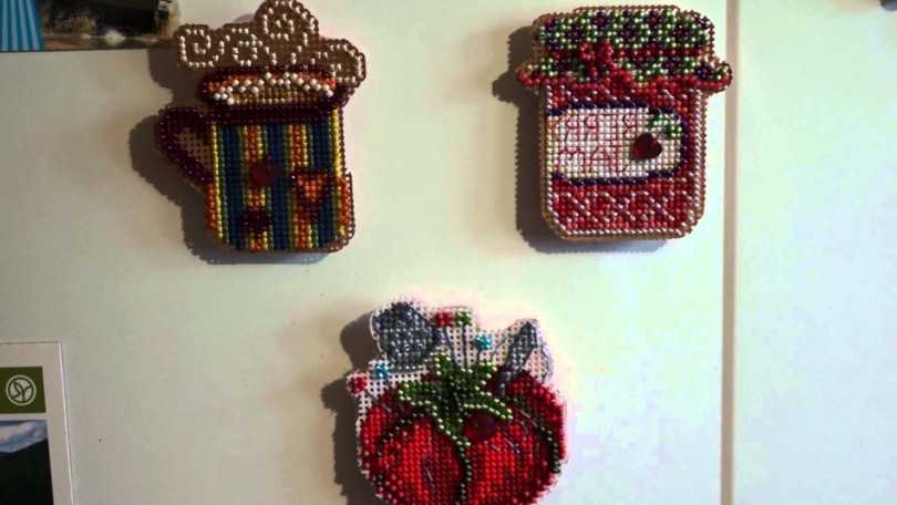 Можно также сделать совсем необычный магнит как на этом фото – магнит на холодильник из капрона.