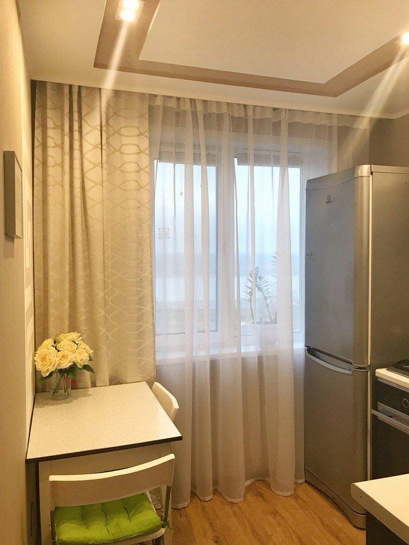 При выборе занавесок в маленькую кухню следует ориентироваться на цвет отделки стен и стилевое решение интерьера.