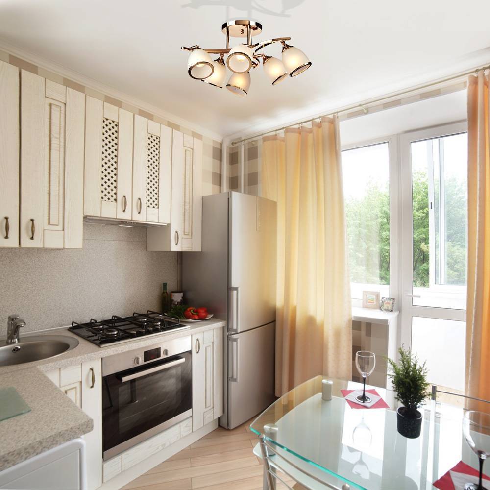 Декоративное освещение не считается обязательным, использовать его или нет, каждый решает сам по желанию. Дизайн кухни 6 кв. м. чаще всего приходится использовать более рационально, четко рассчитывая возможность использования пространства, стен.