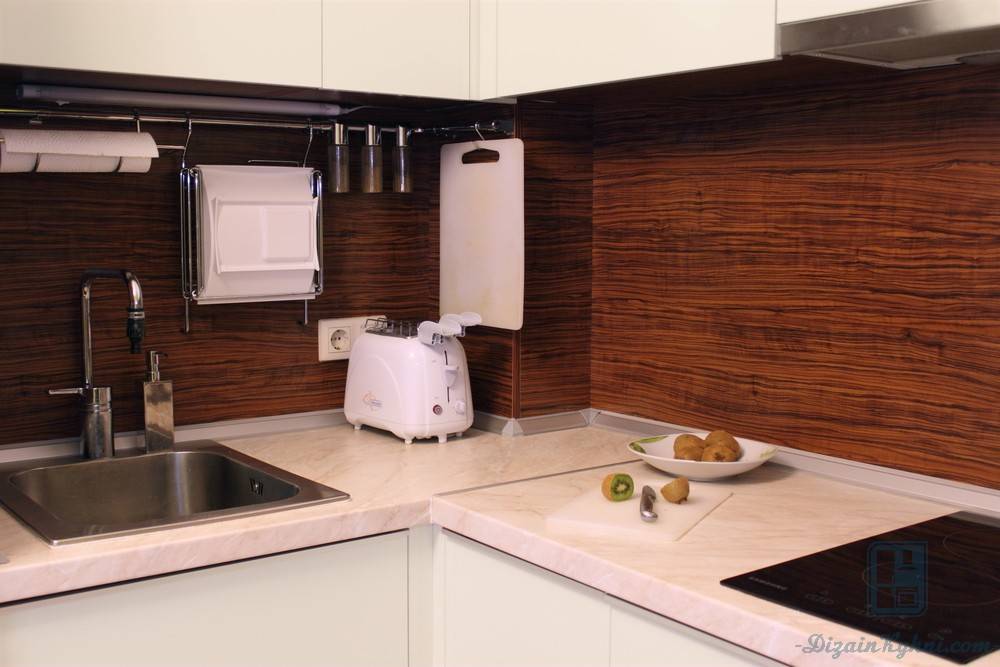 Рабочую поверхность лучше приобрети из МДФ или акрила. Они смотрятся более легко. А вот модели из натуральных материалов слишком габаритны для маленьких кухонь.
